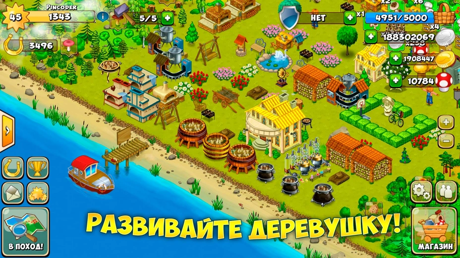- 🚶 Ходите в походы — отправляйтесь в гости к друзьям и незнакомцам, собирайте грибы на их фермах и получайте за это бонусы.